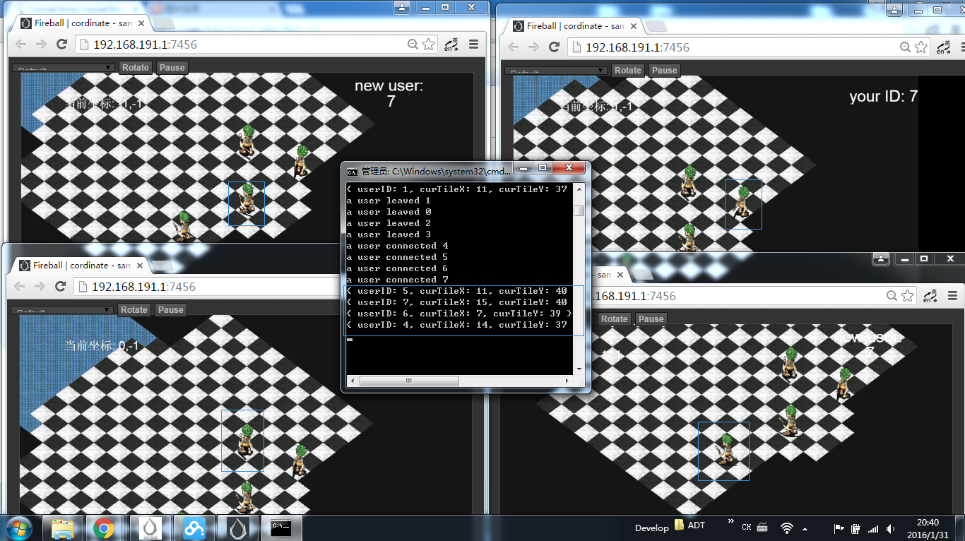 可以看到移动的同步了 后台也会打印 大家移动后的地址 (其实地址不怎么准确 这个bug以后会慢慢修复)