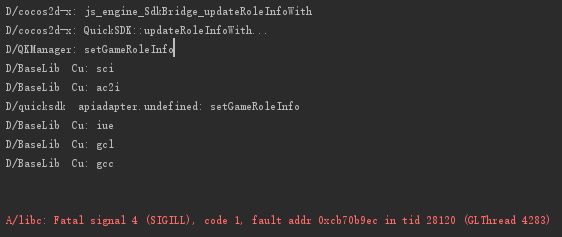 2020-03-13 11:04:52.939 28032-28120/com.jsgame.helloworld A/libc: Fatal signal 4 (SIGILL), code 1, fault addr 0xcb70b9ec in tid 28120 (GLThread 4283)