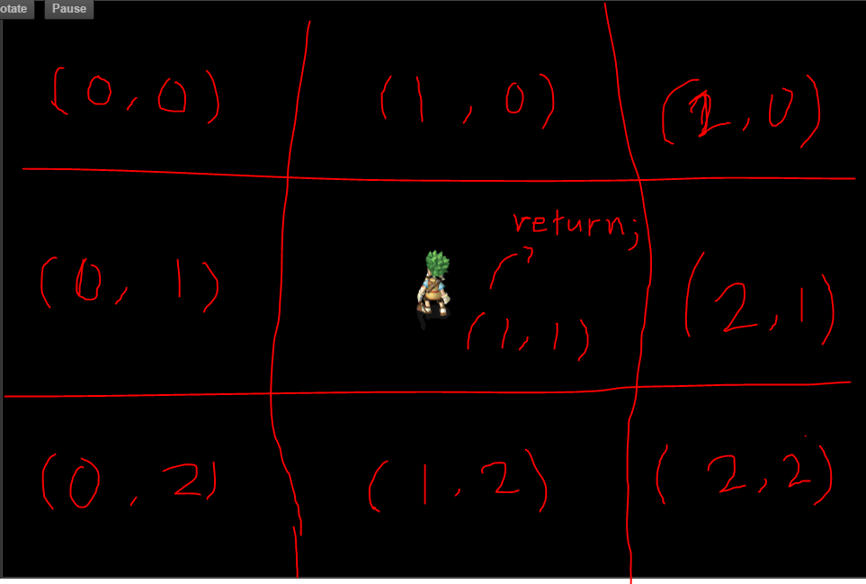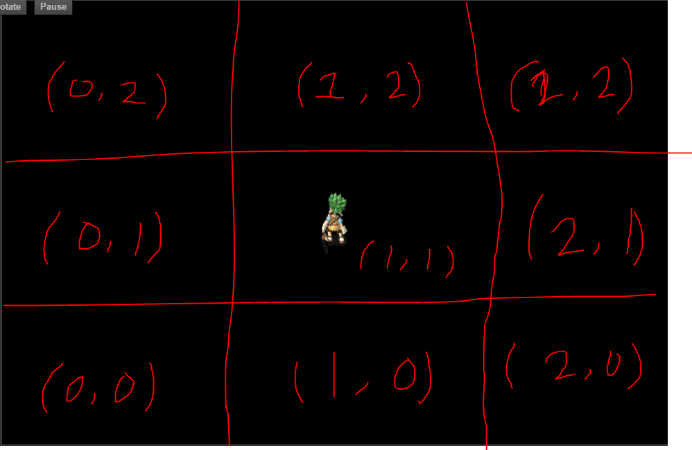 我们的思路是将整个屏幕分为9块 和9宫格一样 点中间的格子 动画不变 点其他位置的格子 就改变动画中玩家的朝向