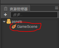 然后呢 在资源管理器中 对asserts 鼠标右键 -> 新建 -> scene 然后重命名为GameScene