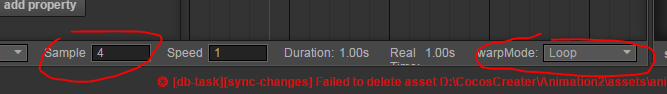 然后呢看到动画编辑器最下面一栏 将Sample 改为4 warpMode 改为 Loop 至于为什么Sample是4 这个我是试出来的 = =