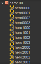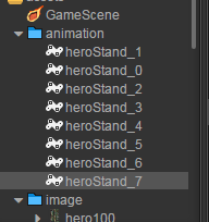 图片的命名我已经写好了 hero为类名 第一个数字为方向 0~7分别是左上方向顺时针到右方向的序号 后两个数字为动作编号 站着为00 最后一个数字为动画帧数目 一个朝向有4张图片