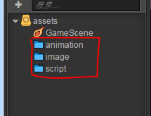 然后呢 我们在asserts 目录下新建几个文件夹 方便管理 script放脚本 image放图片 animation 放动画