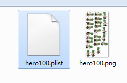 然后图片集的名字也是 hero100 (这里有点奇怪 我之前一次的时候不需要设置图片集的名字 总之记得 设置后 应该有两个文件 一个hero100.plist 一个hero100.png 同名)