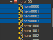 后面呢 选中 资源管理器 image下 的hero0000~hero0003 (shift + 鼠标点击hero0000 + 鼠标点击hero0003) 拖动到动画编辑器里面下方帧列表(和属性列表同高的列表)的第一帧的位置