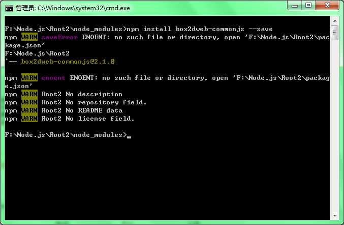 输入 npm install box2dweb-commonjs --save 回车 等待安装完成 可能有警告 不管