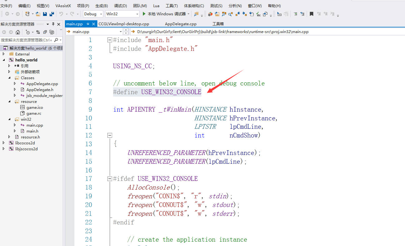 USE_WIN32_CONSOLE 注释去掉