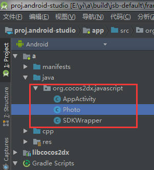 构建编译之后用AndroidStudio打开项目,这个Photo就是我加的Java文件