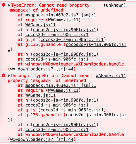 用 msgpack.dev.js 来检查出错原因把,第三方库的问题我们也不是很确定