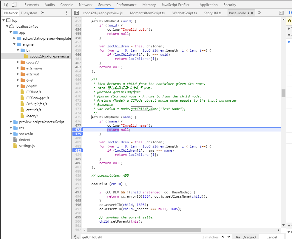 CocosCreator+VSCode,能够调试自己游戏的逻辑代码,但是想调试进入引擎源码,总是弹出找不到文件,有什么方法吗?