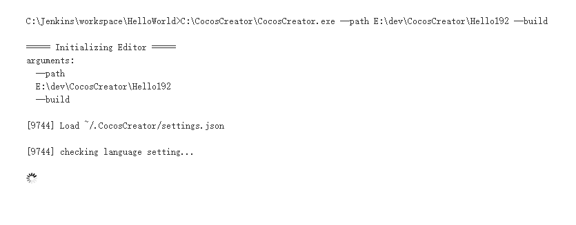 C:\CocosCreator\CocosCreator.exe --path C:\Jenkins\workspace\HelloWorld_dev\HelloWorld --build