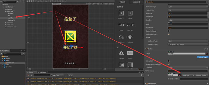 游戏开始默认显示menuLayer,游戏中,通过控制各个层级的显示和隐藏,实现不同模块的切换。例如开始游戏,点击开始以后,触发回调函数,切换到游戏关卡选择界面,绑定关系如下图: