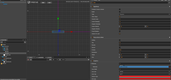 物理画线时给线加上物理组件时线条的类型为Dynamic时线没有重力,打开物理调试可看到线上的刚体下落,但是线不跟着刚体下落,我的线是用很多条小线段组成: