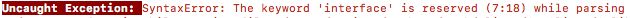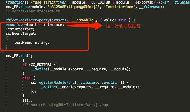 对比可以看出在mac下面ts编译成js时,多出了一段,这多出的一段导致js语法错误,因为interface是js的保留关键字