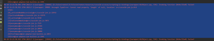 06-18 15:23:58.905 2794-2823/? E/jswrapper: [ERROR] (D:/CoCosCreator2.0.9/CocosCreator/resources/cocos2d-x/cocos/scripting/js-bindings/jswrapper/v8/Object.cpp, 534): Invoking function (0x9ec721e0) failed!
