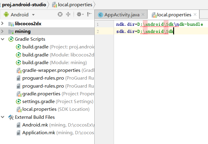 AndroidStudio里的路径需要双斜杠\或者反斜杠,但是每次cocosBuild后都会被修改成单斜杠,每次都要手动该一遍. 希望官方可以处理一下这边逻辑,