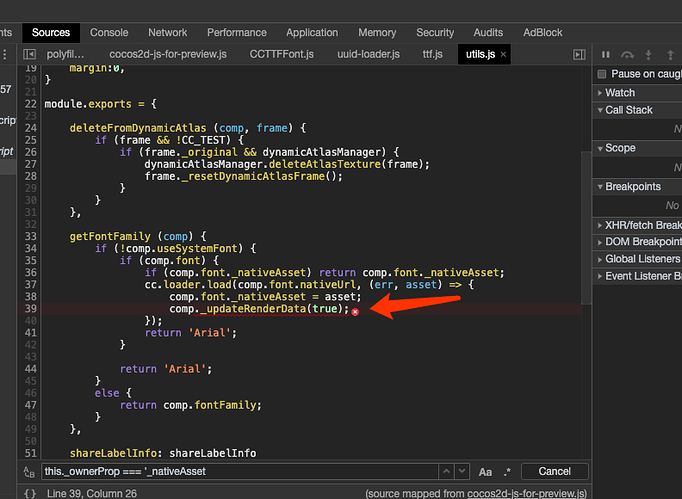 重现方式:helloWorld工程,把label的font设置成ttf