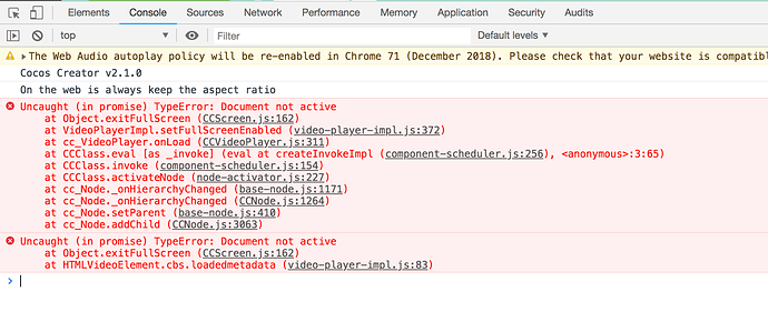 我使用的cocos2.1,就是正常吧视频放在预制体里面,然后按钮创建出来,就会报错,您可以试一下,就是正常播放就回这样爆红,谢谢