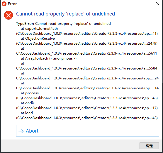 用cocosDashboard打开2.3.3-rc4项目突然报错,进入不了编辑器