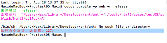 cocos compile -p web -m release 发布网页,在终端中报错 127.