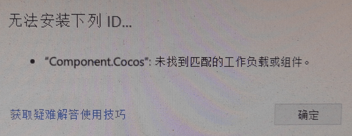 cocosv2.2.2 win安装提示Component.cocos未匹配到工作负载组建