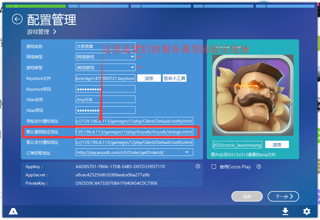 调试的时候把【渠道参数】的【Log模式】改成verbose重新打包,再瞧瞧AnySDK的日志
