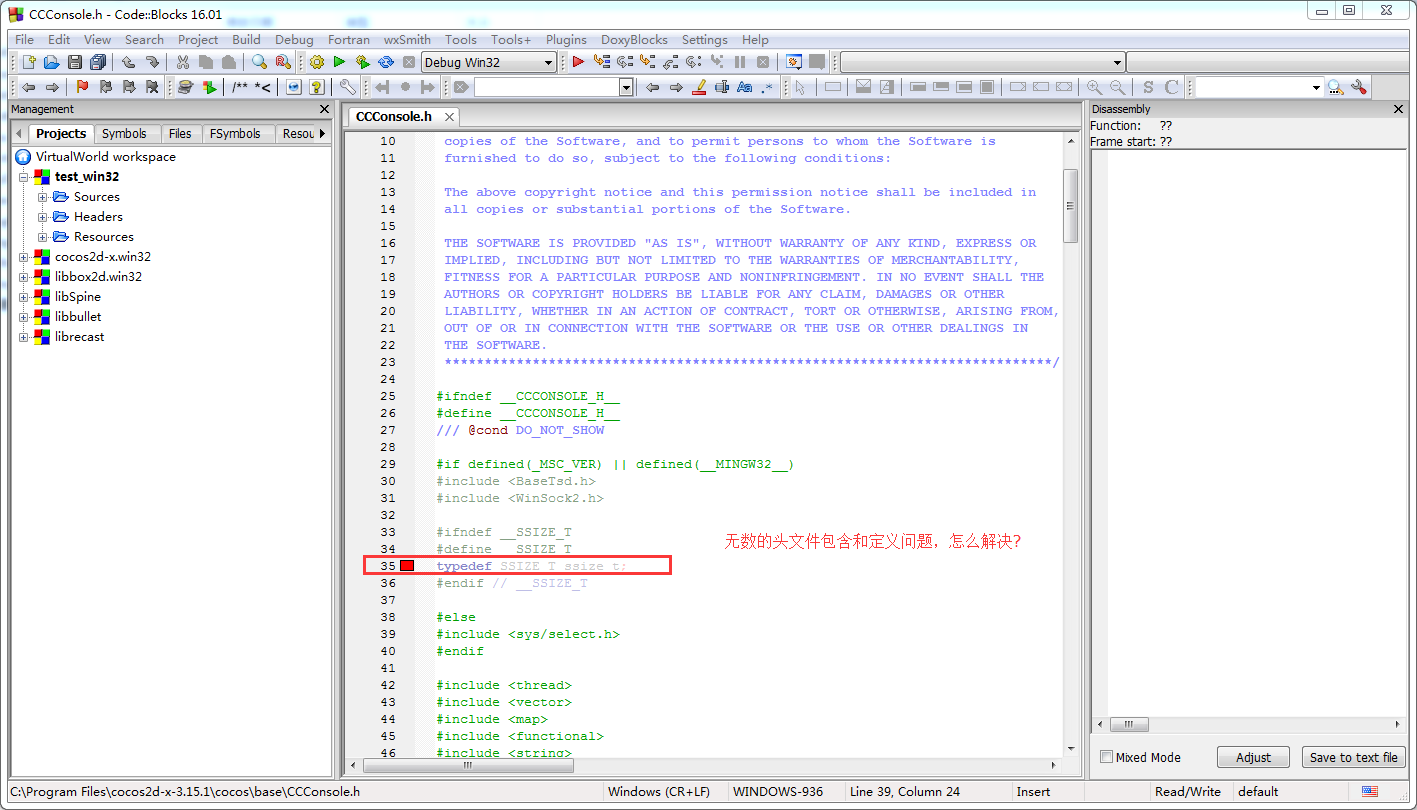 现在用Codeblocks打开该项目(从visual studio solution文件打开),结果出现了大量的头文件错误(包含或者定义,下图是一个例子),请问应怎么解决问题?