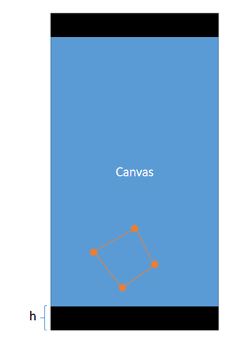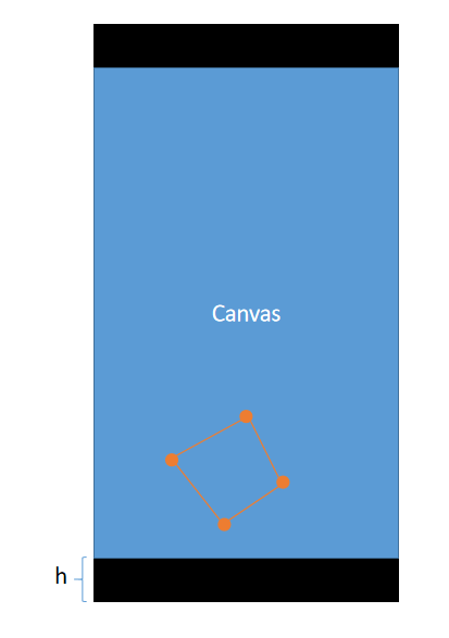 如下图所示:在屏幕中间放一个 Canvas(蓝色部分)。 因为手机屏幕过大,所以上下出现了黑边。 这个时候,我在canvas的脚步上定义了一个: