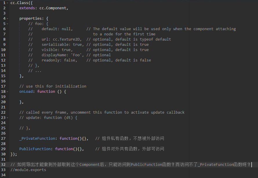 上图是Creator中的组件脚本,我该如何让这个组件只导出PublicFunciton?也就是外部取到这个组件,只能访问到PublicFunction?有方法能做到么?