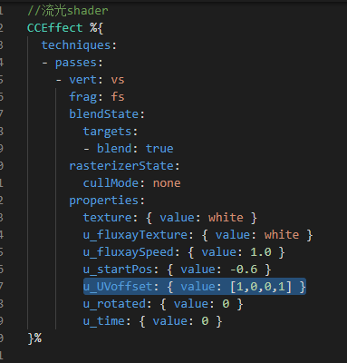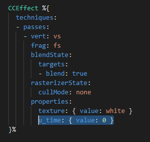 我没怎么看过shader的教程的前提下,参照大佬的代码去做了些尝试,发现 u_time可以可以直接在effect文件里赋值(?不知道shader的专业术语是不是叫赋值)