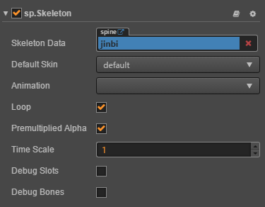 1.新建一个空节点,添加Spine Skeleton组件,把对应的Spine文件拖过去,显示正常,如下图所示