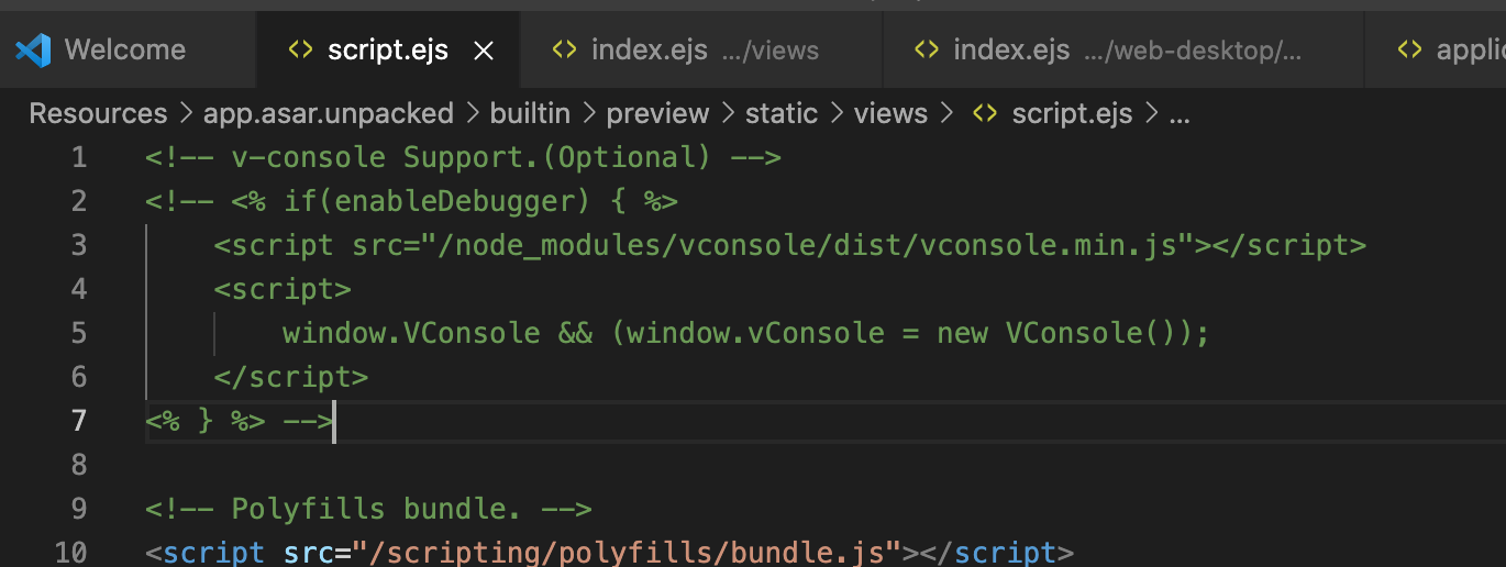我自己看了一下开发模式下的index模版在哪,修改了这个模版文件,注释了vconsole的开启,到时我自己会设置开启。
