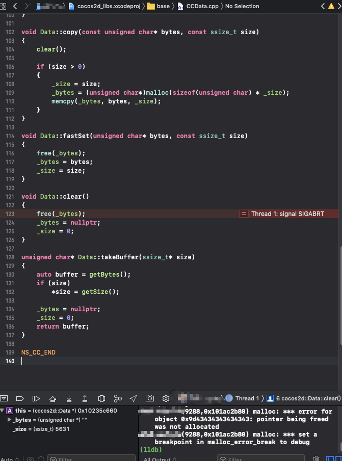 RoomGame-mobile(1828,0x1b4afeb40) malloc: *** error for object 0x104ee8000: pointer being freed was not allocated