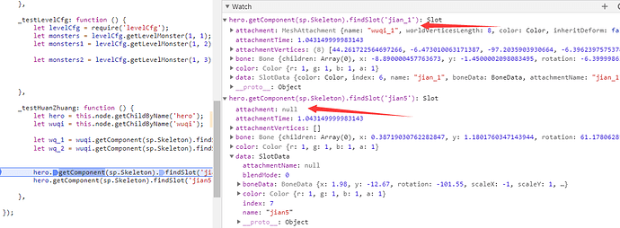 发现 此时 jian_1插槽内attachment的数据为null,jian5内插槽数据存在,名字为wuqi_1;