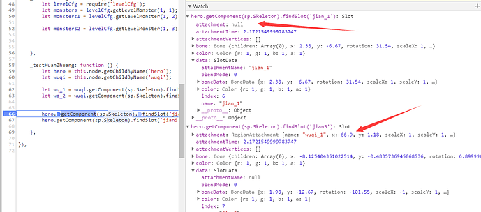 在获取一个spine的slot的时候,调用findSlot,发现数据在动画播放前后取到的不同。