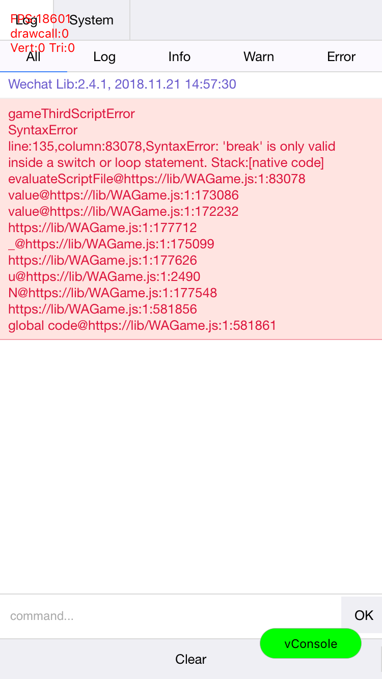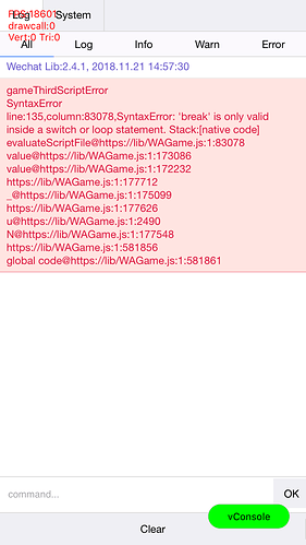 IOS实机打开以后WAGame.js报异常,堆栈信息如下: