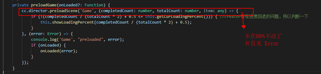 同样的问题,加载场景时,preloadScene加载到99%左右就卡住了,也没有报错。正在一步一步查看是哪里加载失败。