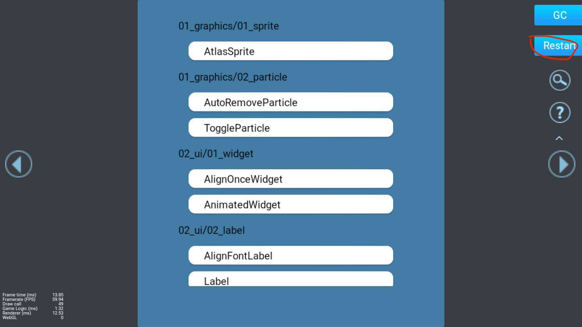 重现方式:将官方 example-cases 安装到手机, 手动点击右上角 restart, 重启后 重复该操作, 一般重复3次以上后会崩溃