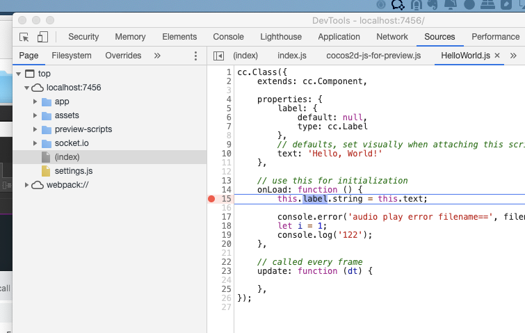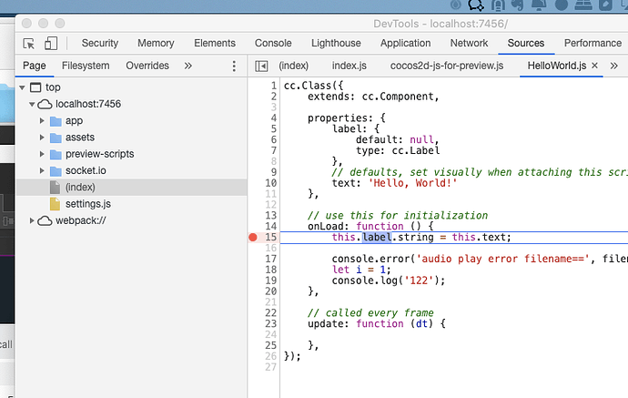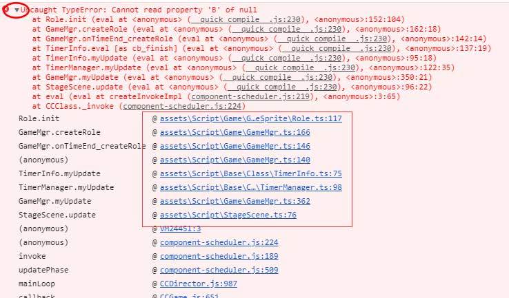 这个版本的creator似乎更改了编译架构,所有方法都是在一个quick_compile的脚本里通过window.eval来执行的。这样的坏处是最后断的点都是在quick_compile脚本里的,至于执行的函数来自于哪个文件就根本查找不到゚(T▽T)