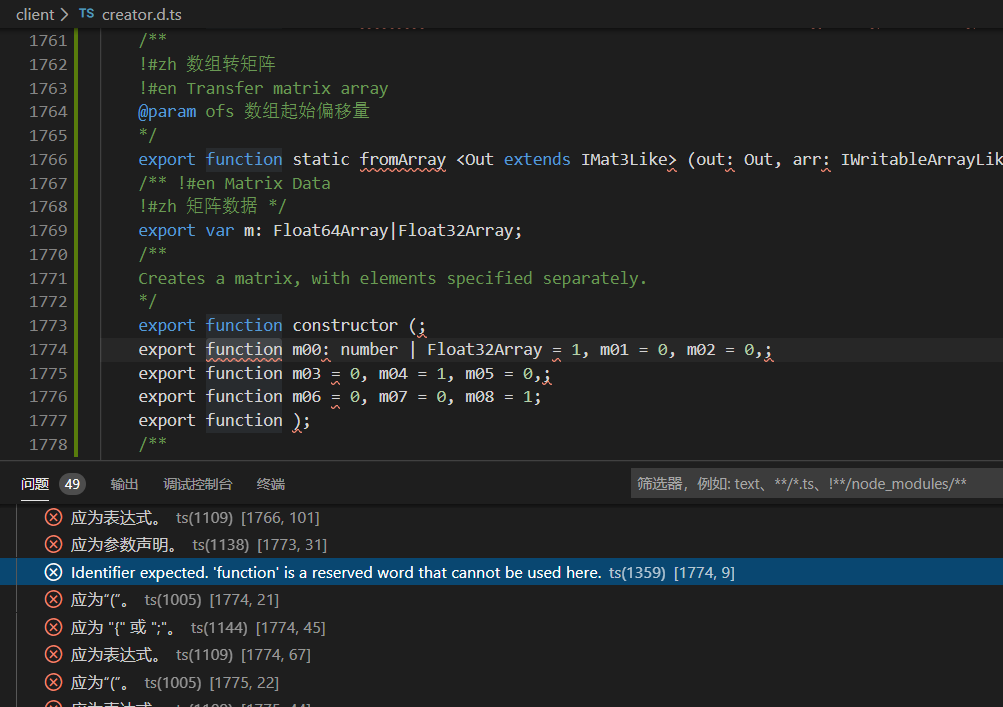 抱歉,语法提示文件出现了问题,已经提交处理了 可以使用附件这个语法提示文件 creator.d.ts.zip (216.2 KB)