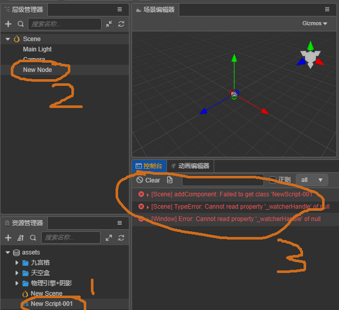 脚本(1)加到节点(2),报错(3)。请帮忙解决。