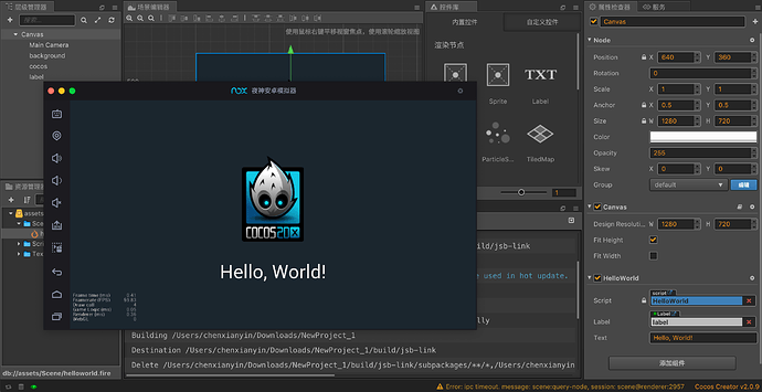 creator2.0.9,新建一个hello world工程,把canvas 的 Design Resolution 设置为 1280 * 720,打包apk,在夜神android 4.4.2模拟器上,启动后,十几秒后闪退,出现以上日志