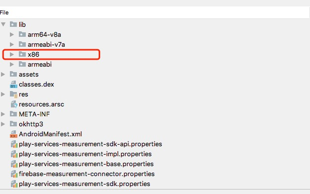 然后用android studio 打包apk时,包体里面自动会增加 x86的lib 导致谷歌不能上架.