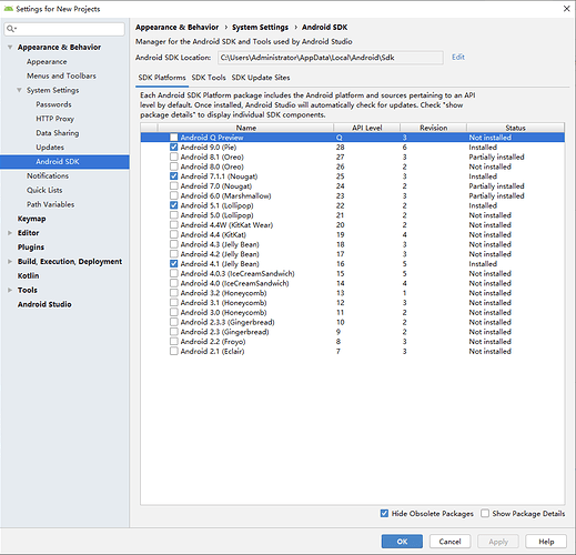 Parsing C:\Users\Administrator\AppData\Local\Android\Sdk\build-tools\29.0.0-rc3\package.xml