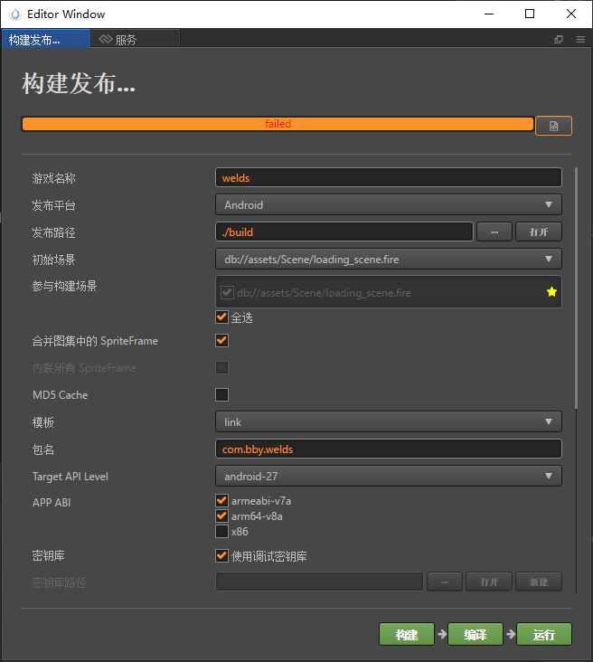 求助!使用Creator构建发布Android时在“编译步骤”时失败!