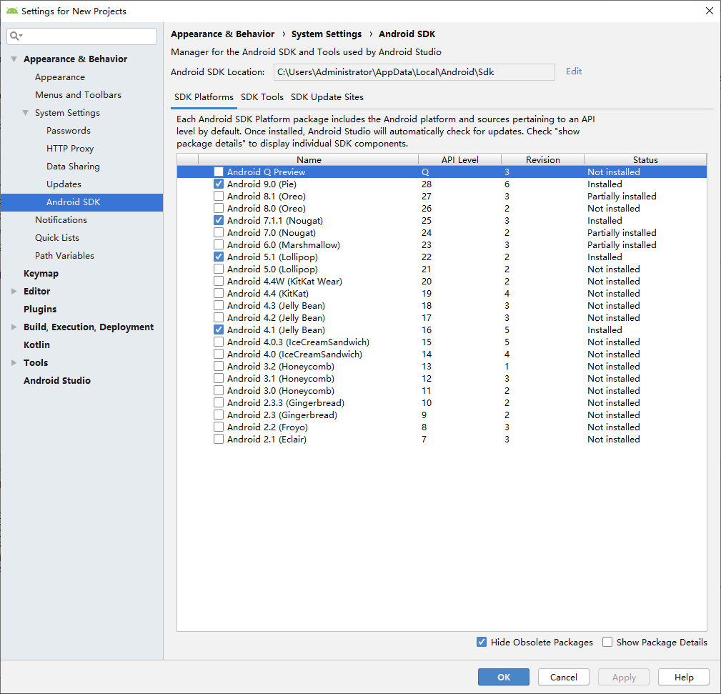 Parsing C:\Users\Administrator\AppData\Local\Android\Sdk\sources\android-28\package.xml