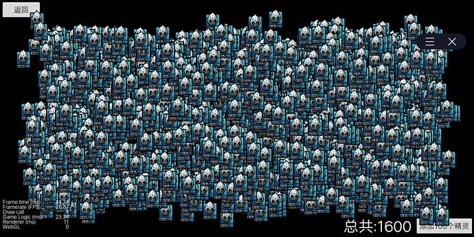 多精灵随机移动时,看逻辑帧占时比较高,可能是1600次update执行的缘故?