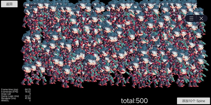h5的spine性能cocos也输了FPS18.02