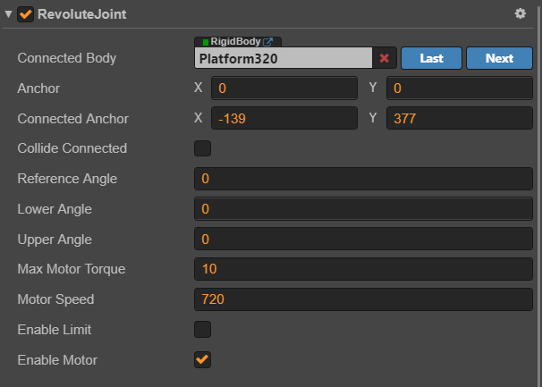 Wheel节点添加了一个动态刚体,还添加了一下cc.RevoluteJoint关节。
