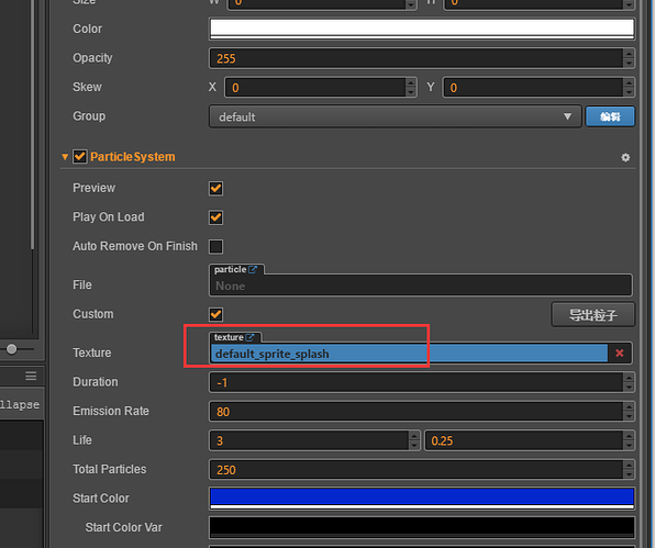 从文件菜单中选择导入Cocos Builder项目(*.ccbproj),导入后由ccb文件(含有粒子系统)生成的prefab,ParticleSystem组件其他属性都是正确的,唯独 Texture字段一直是default_sprite_splash 。